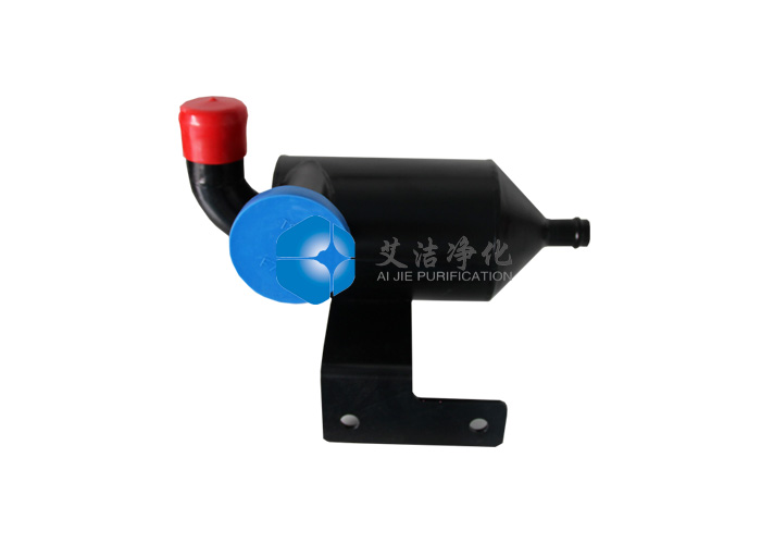 艾潔凈化生產的旋風式油氣分離器是讓氣液混合氣經過切向進氣道或是螺旋進氣道進入分離器內,使混合氣在分離器內旋轉運動,以此產生離心力來實現(xiàn)油滴的分離,它的分離機理與主動離心式油氣分離器相同,只是不需外界提供動力。